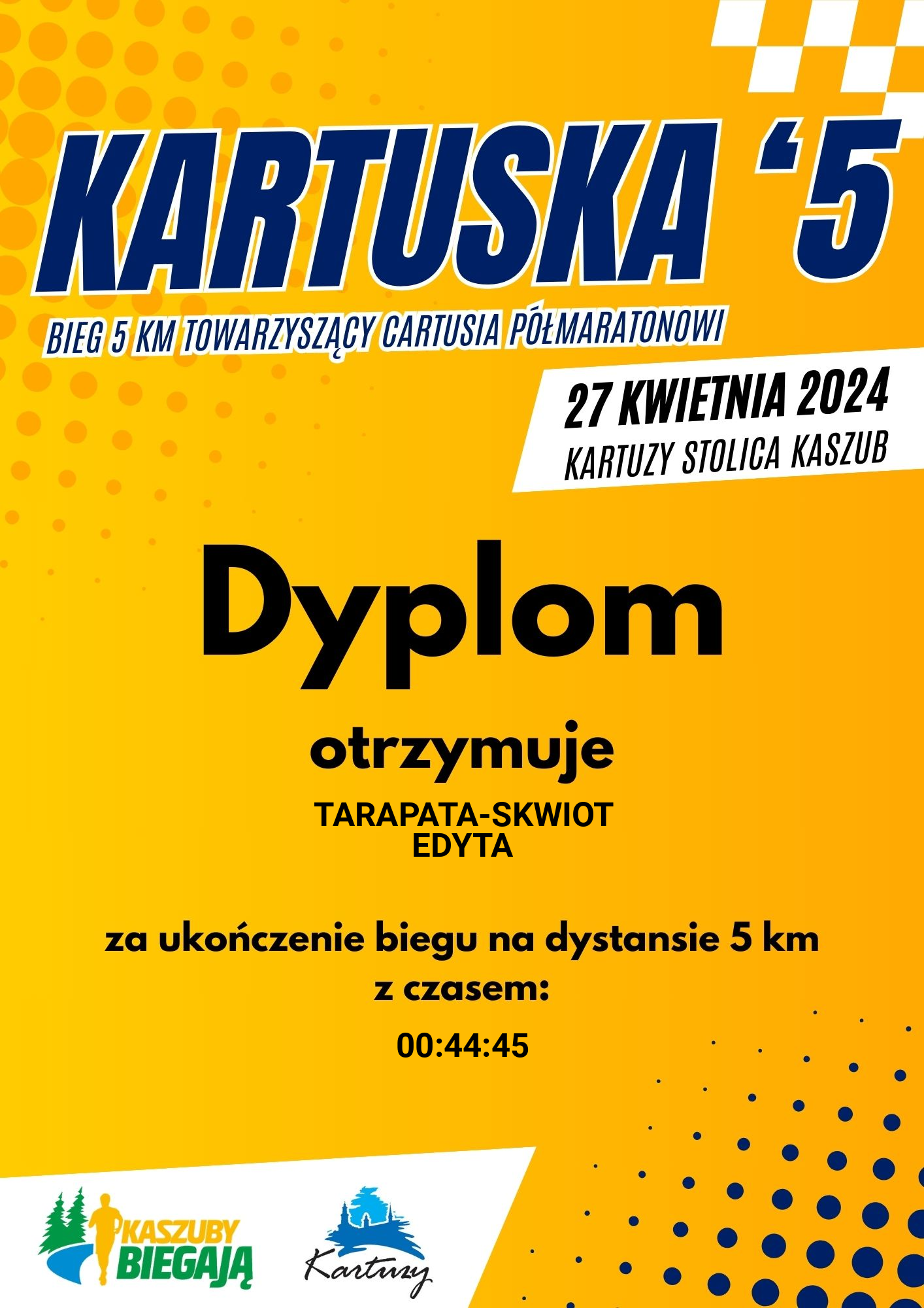 | 131 | TARAPATA-SKWIOT | EDYTA | 140 | K | 55 | GDAŃSK | TAKA RYBA | K40-49 | 14 | 00:44:45 | 00:44:35 | Pobierz |
