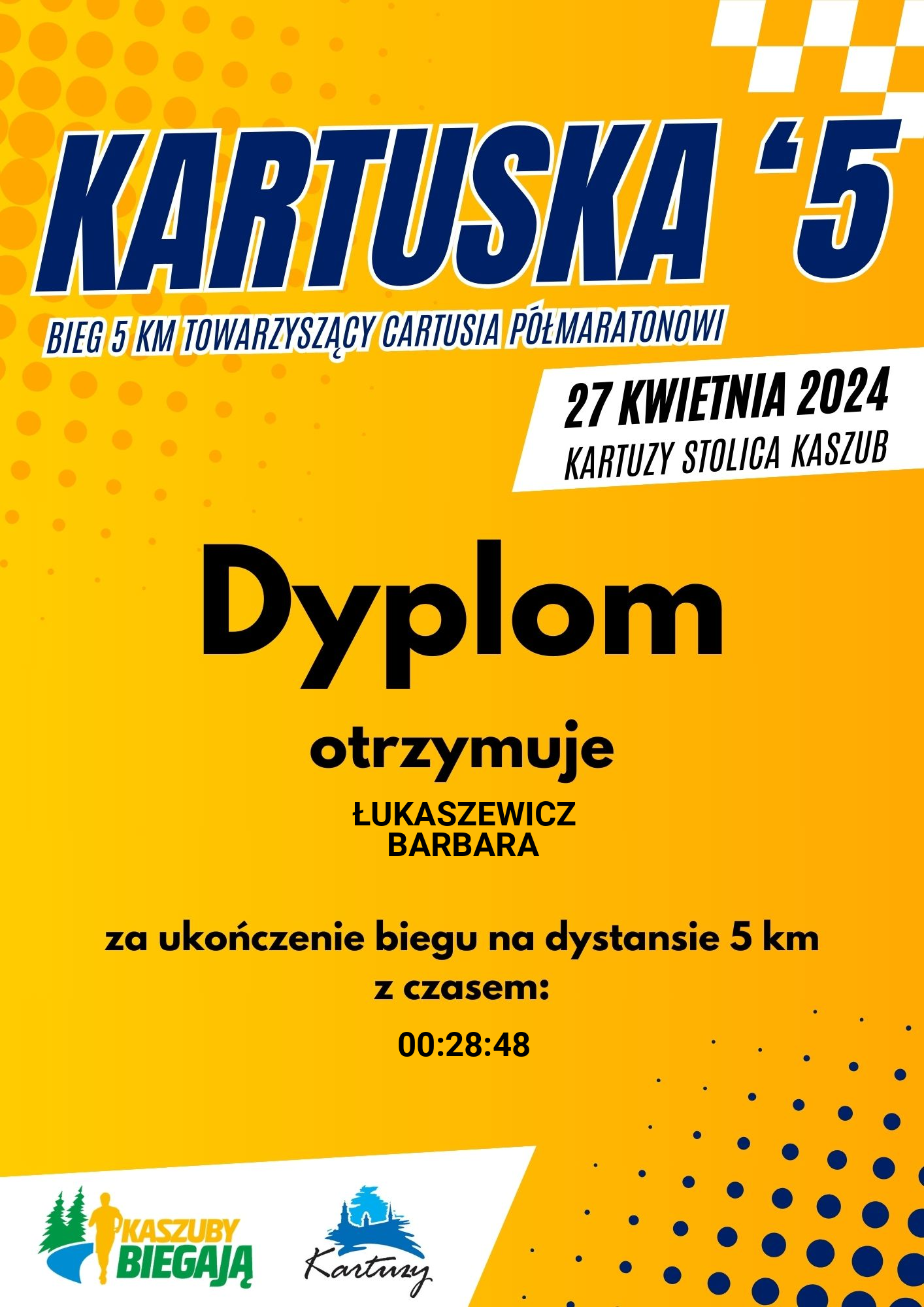| 111 | USTOWSKA | JUSTYNA | 144 | K | 44 | BRODNICA GÓRNA | K30-39 | 15 | 00:32:16 | 00:32:06 | Pobierz | |