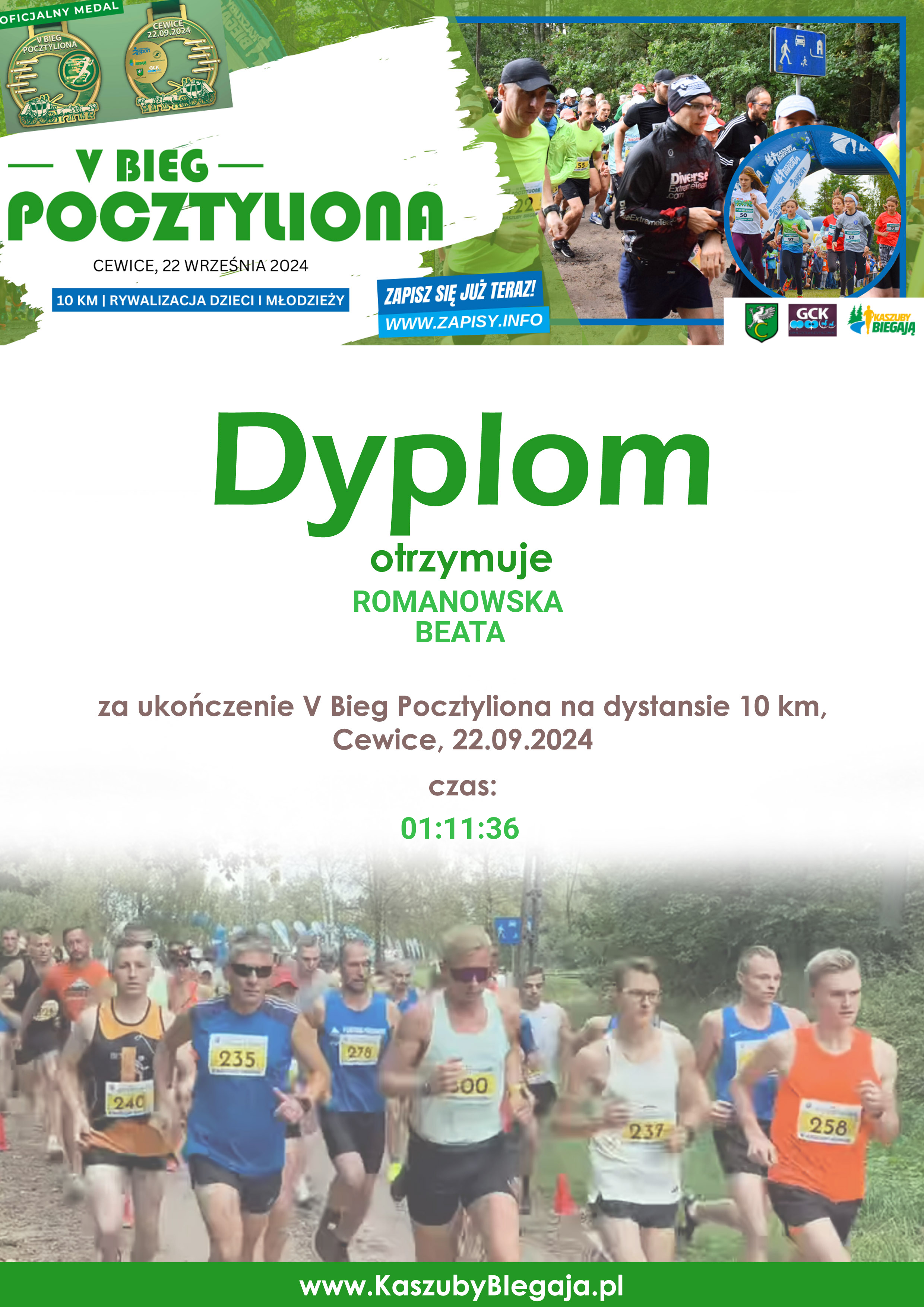 | 82 | ROMANOWSKA | BEATA | 274 | K | 23 | RUMIA | VEGE RUNNERS | K60-69 | 2 | 01:11:36 | 01:11:36 | Pobierz |