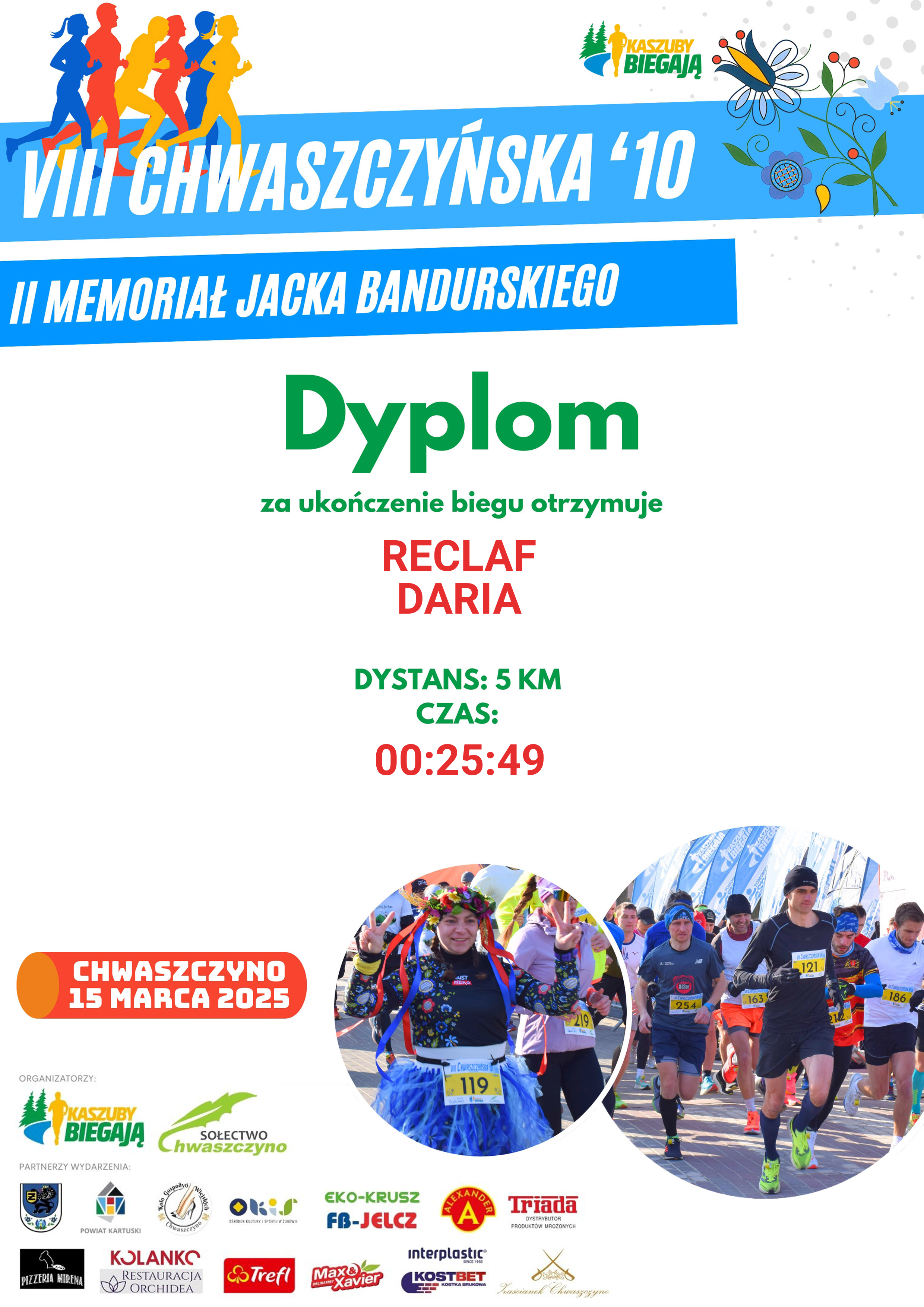 | 61 | RECLAF | DARIA | 132 | K | 18 | BORZESTOWO | BIEGAJĄCY DIETETYK TEAM | K30-39 | 5 | 00:25:49 | 00:25:49 | Pobierz |