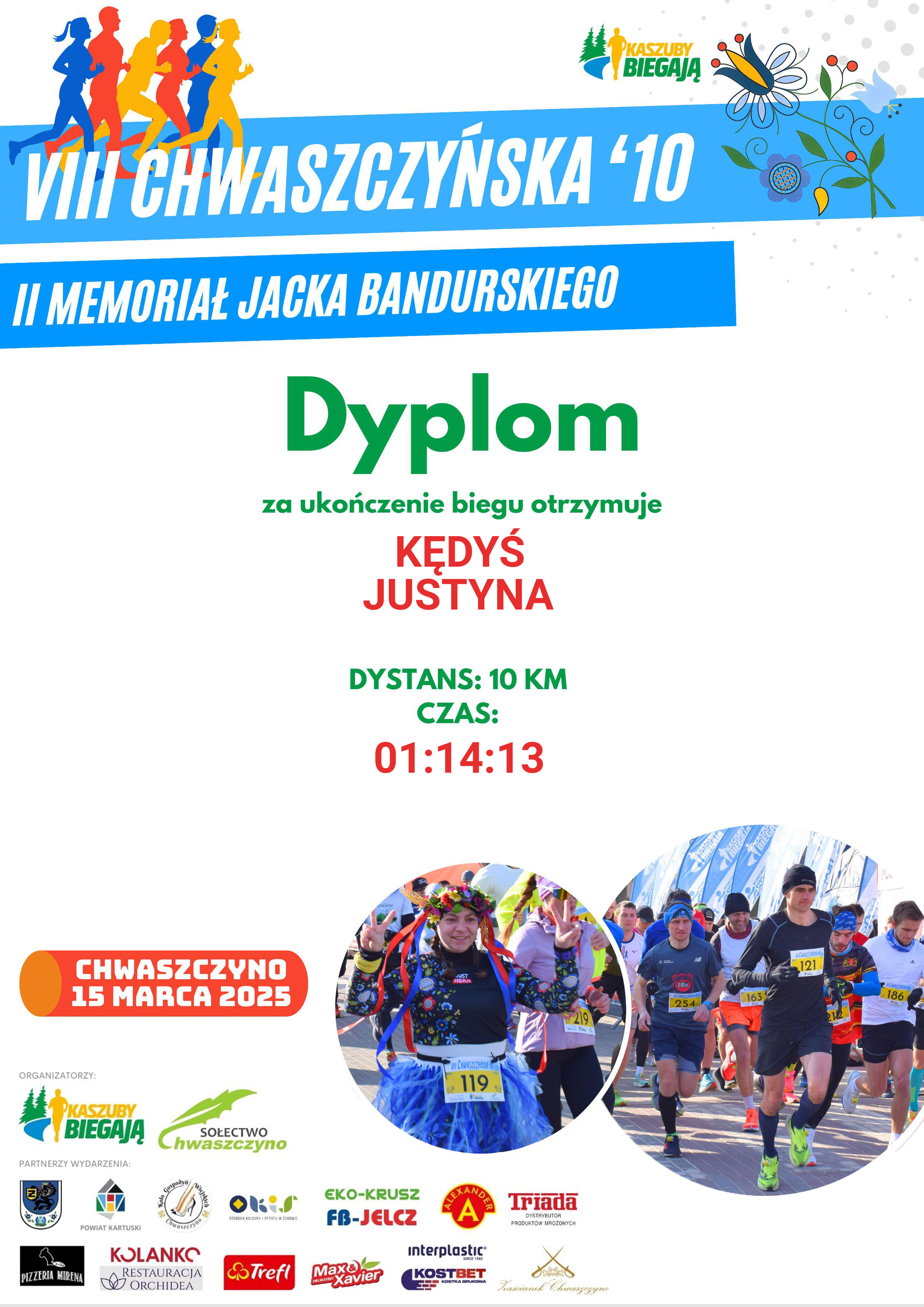 | 155 | KĘDYŚ | JUSTYNA | 569 | K | 50 | SŁUPSK | K16-29 | 8 | 01:14:13 | 01:14:13 | Pobierz | |