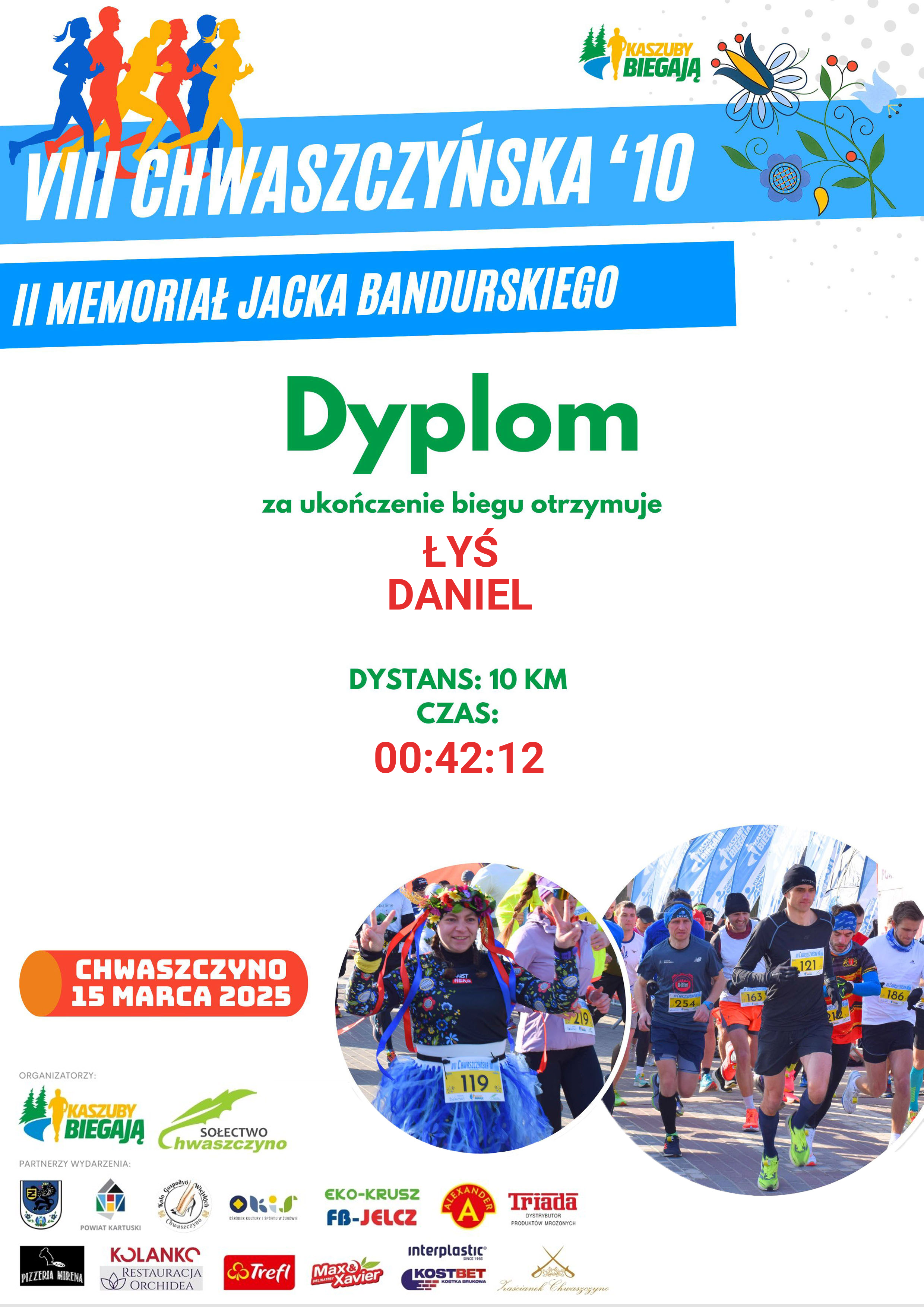 | 36 | DROBIŃSKI | WOJCIECH | 571 | M | 31 | TUCHOM | FIT DIETETYK | M40-49 | 10 | 00:44:18 | 00:44:18 | Pobierz |