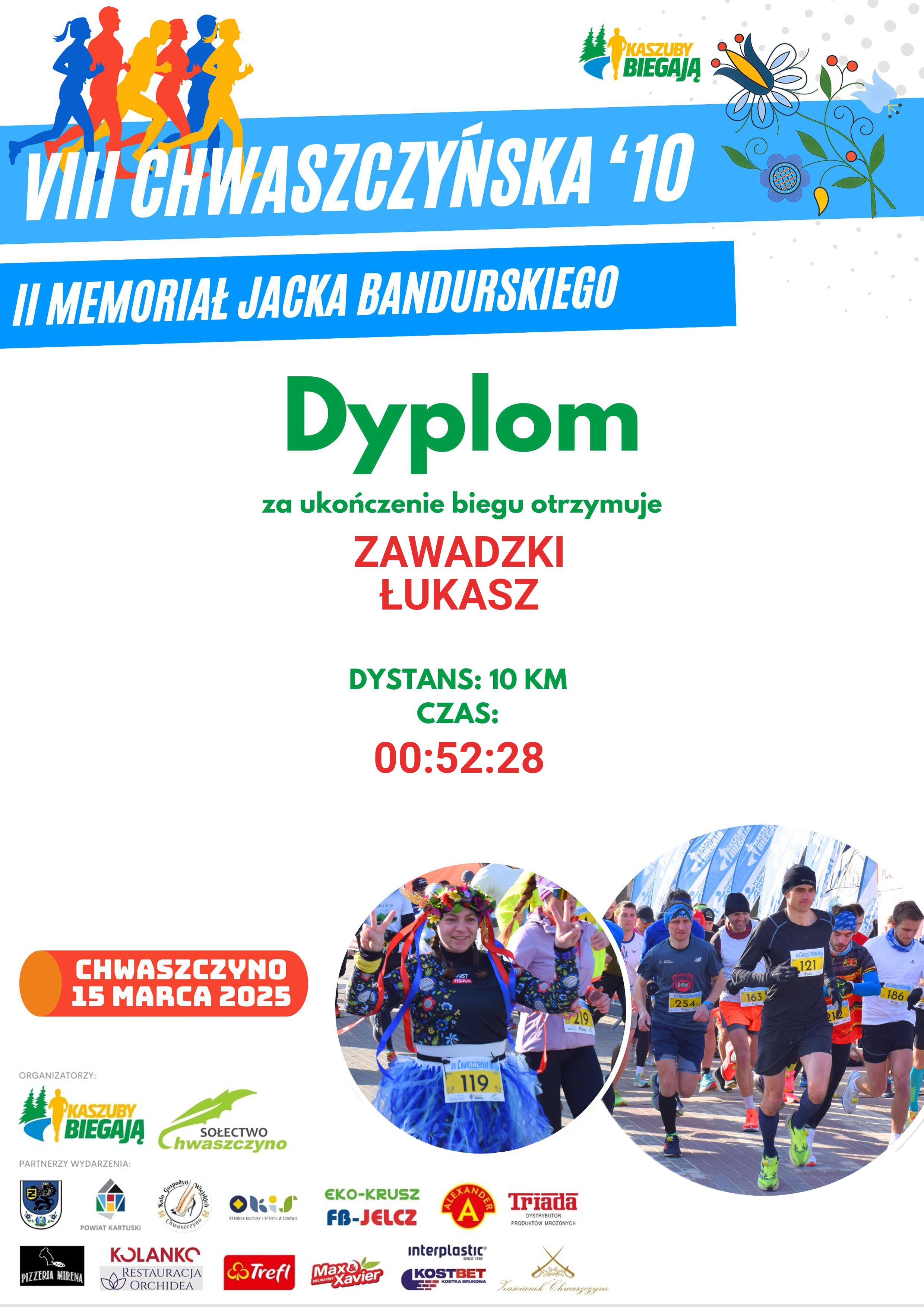 | 5 | KAMIŃSKI | JACEK | 477 | M | 5 | ŻUKOWO | KUJAWSCY RUNNERS | M50-59 | 00:38:05 | 00:38:05 | Pobierz | |