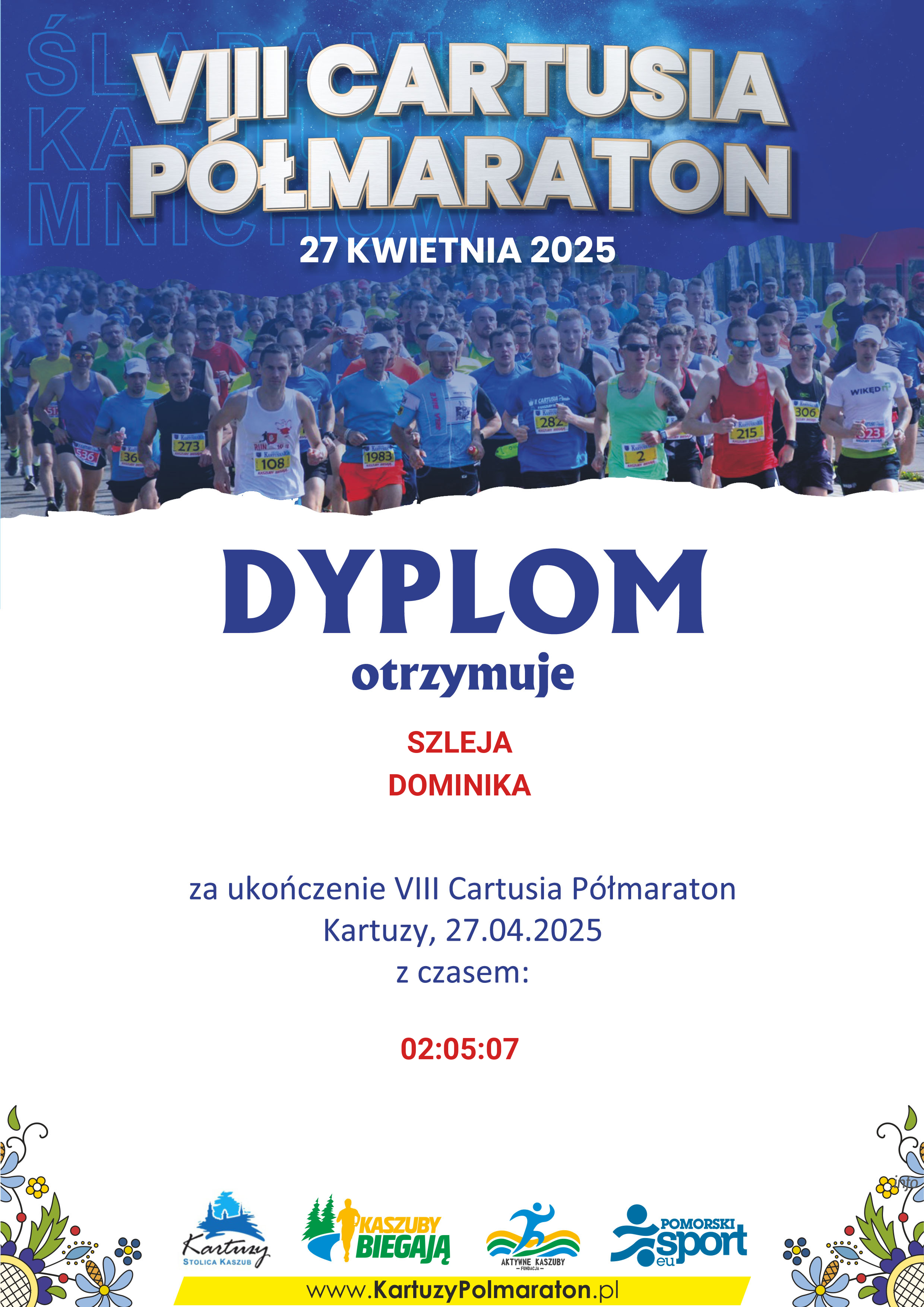 | 113 | SZLEJA | DOMINIKA | 521 | K | 26 | GDAŃSK | K30-39 | 10 | 02:05:07 | 02:05:07 | Pobierz | |
