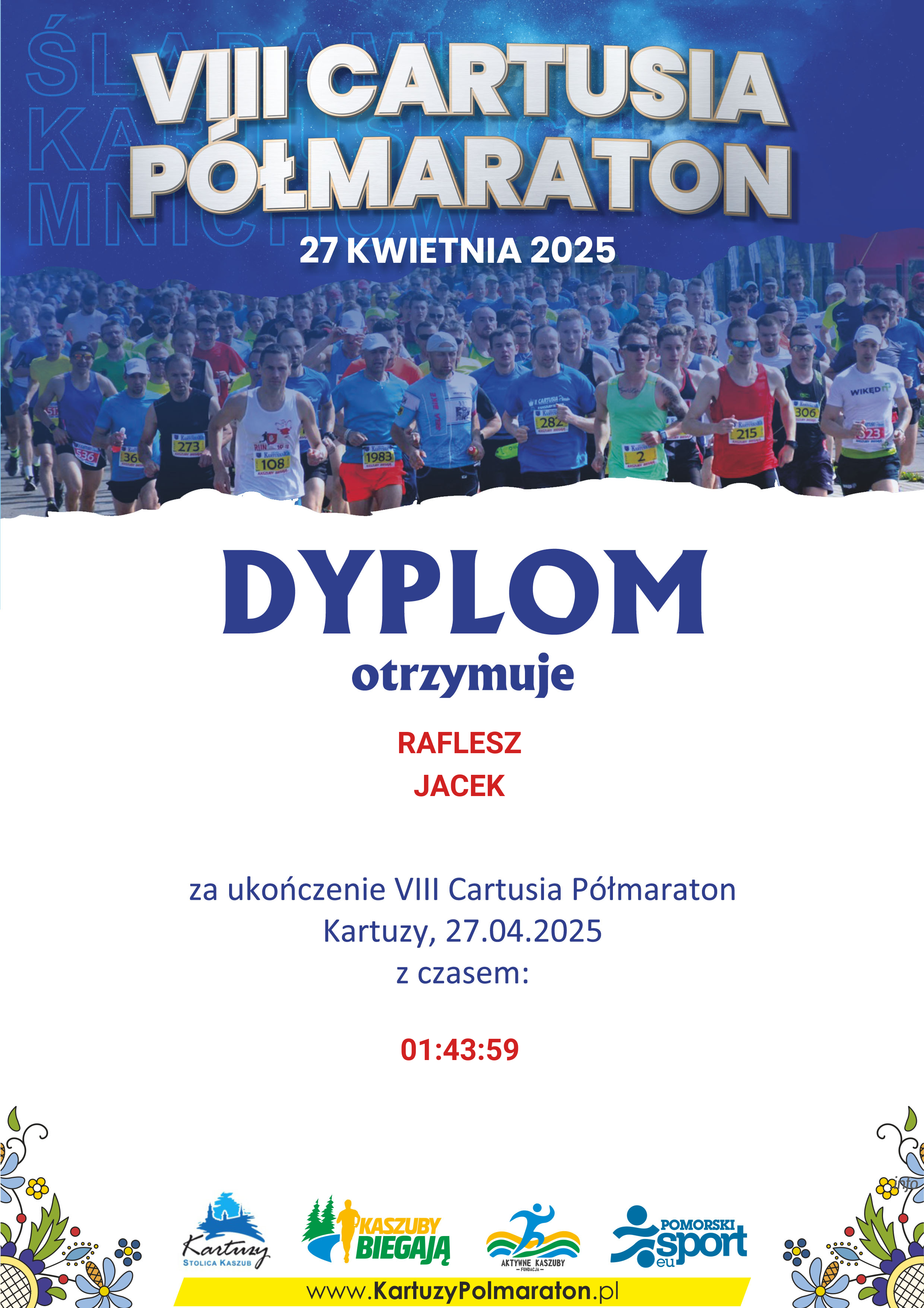| 54 | RAFLESZ | JACEK | 552 | M | 46 | GDYNIA | M30-39 | 17 | 01:43:59 | 01:43:59 | Pobierz | |