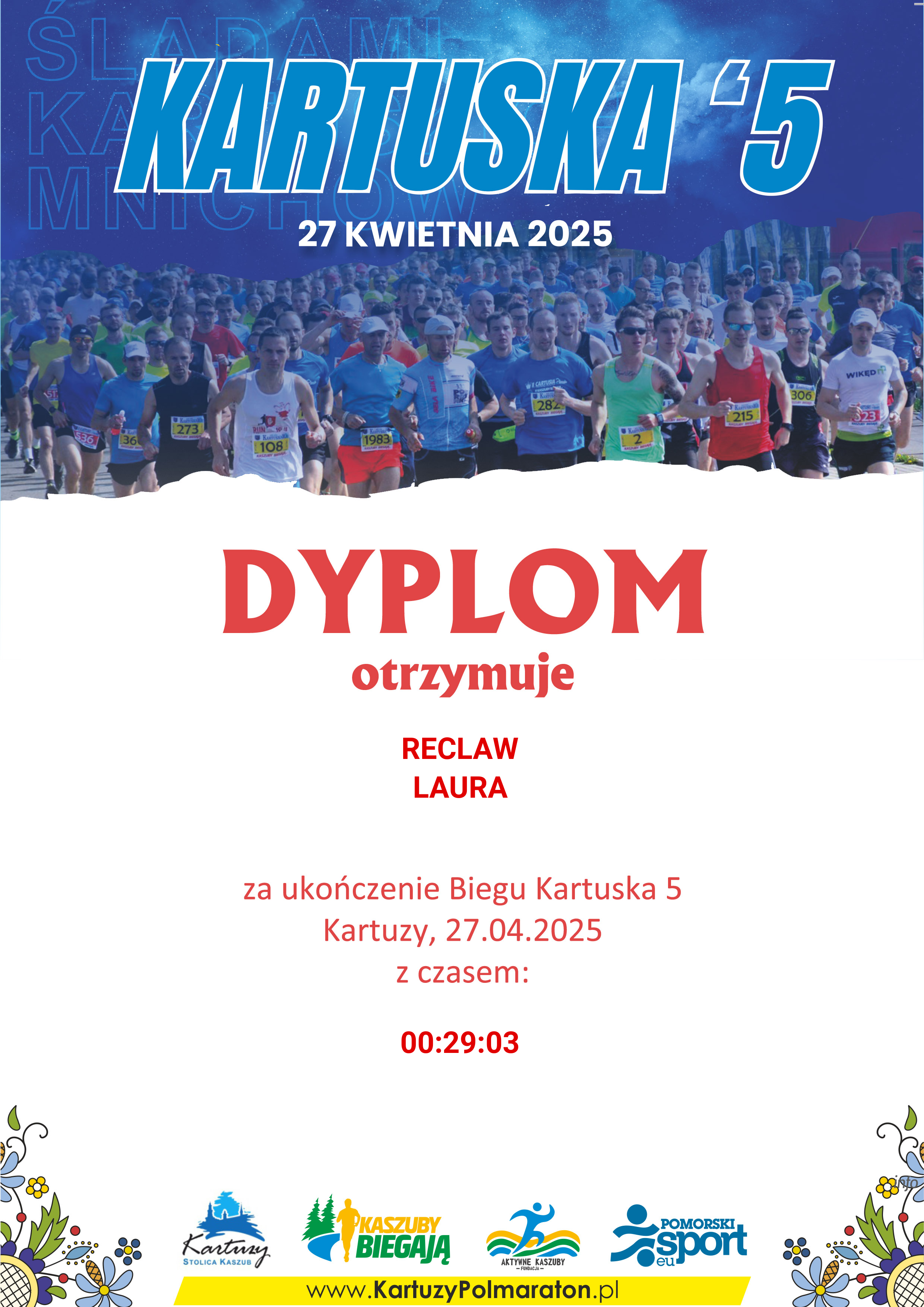 | 144 | RECLAW | ANNA | 172 | K | 53 | SIERAKOWICE | K40-49 | 18 | 00:33:01 | 00:33:01 | Pobierz | |