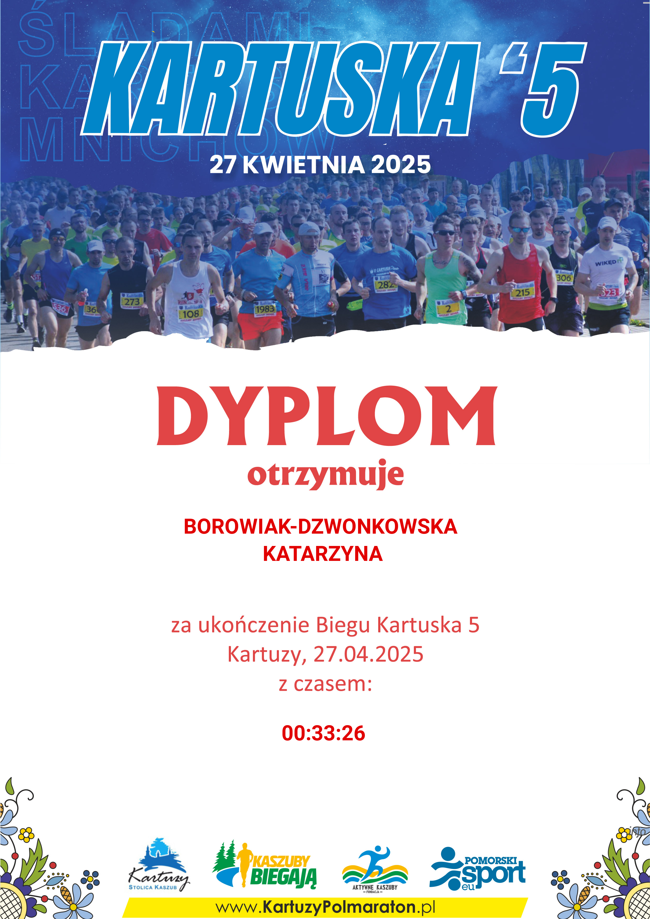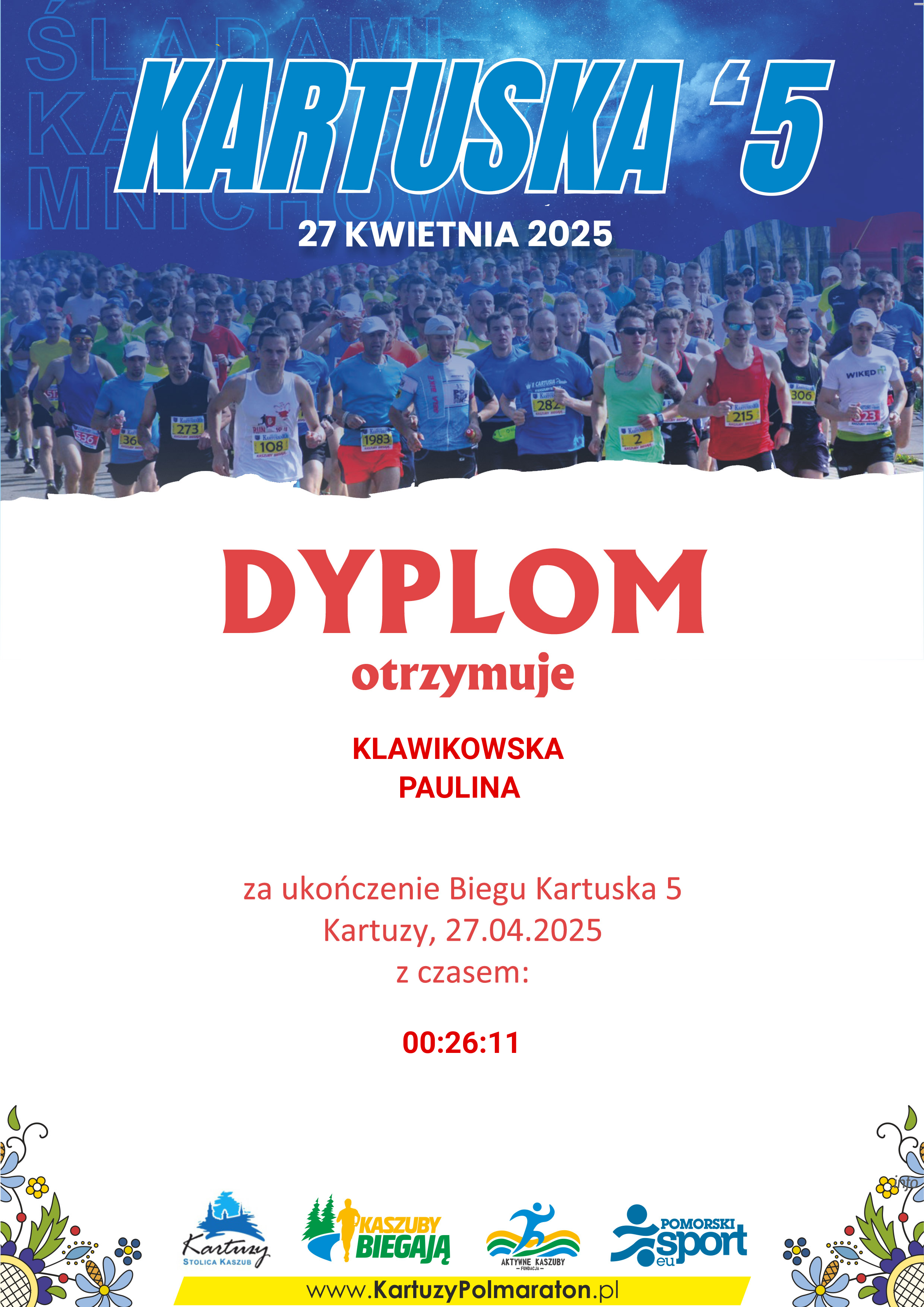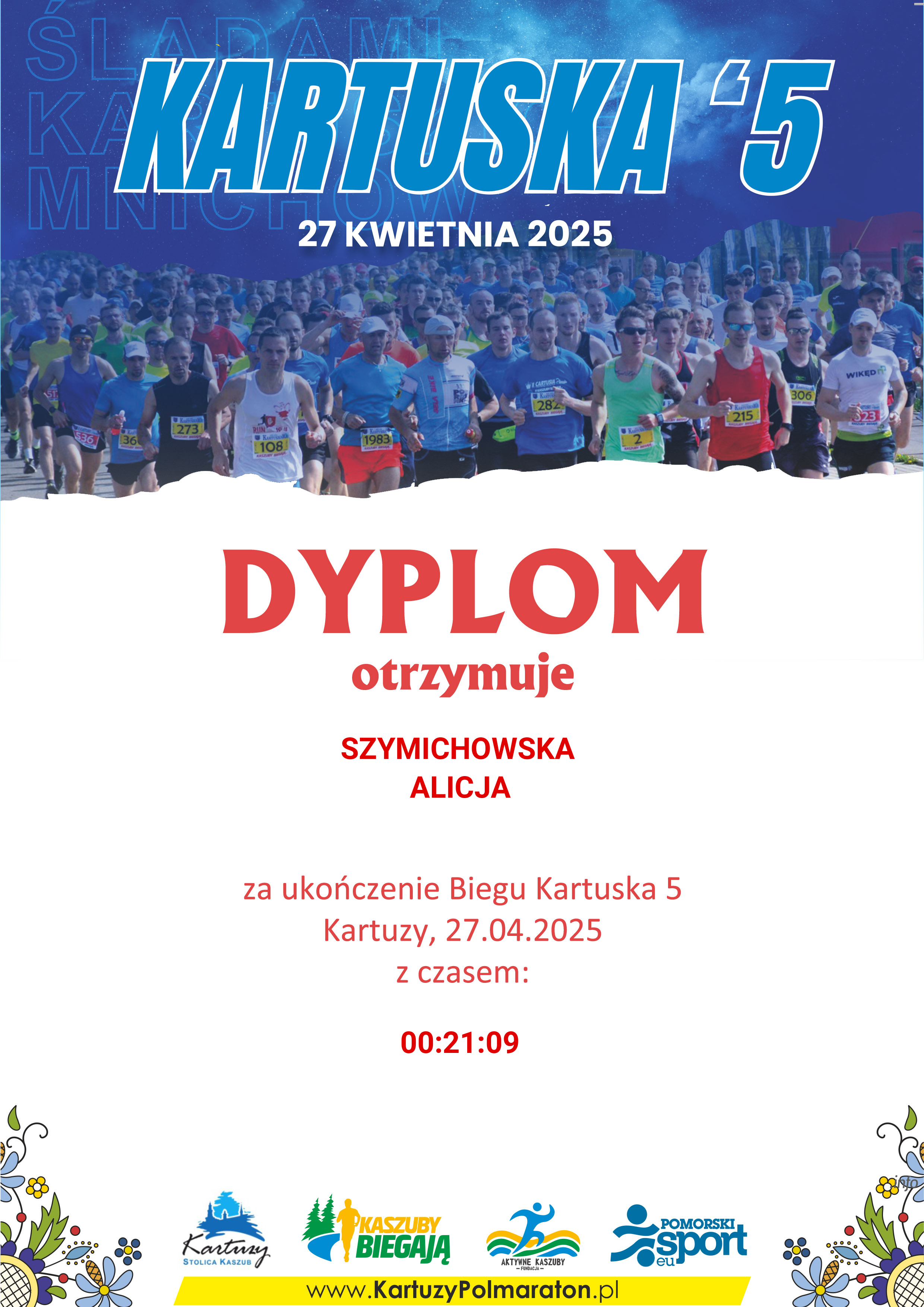 | 25 | SZYMICHOWSKA | ALICJA | 125 | K | 3 | KIEŁPINO | K12-29 | 00:21:09 | 00:21:09 | Pobierz | ||