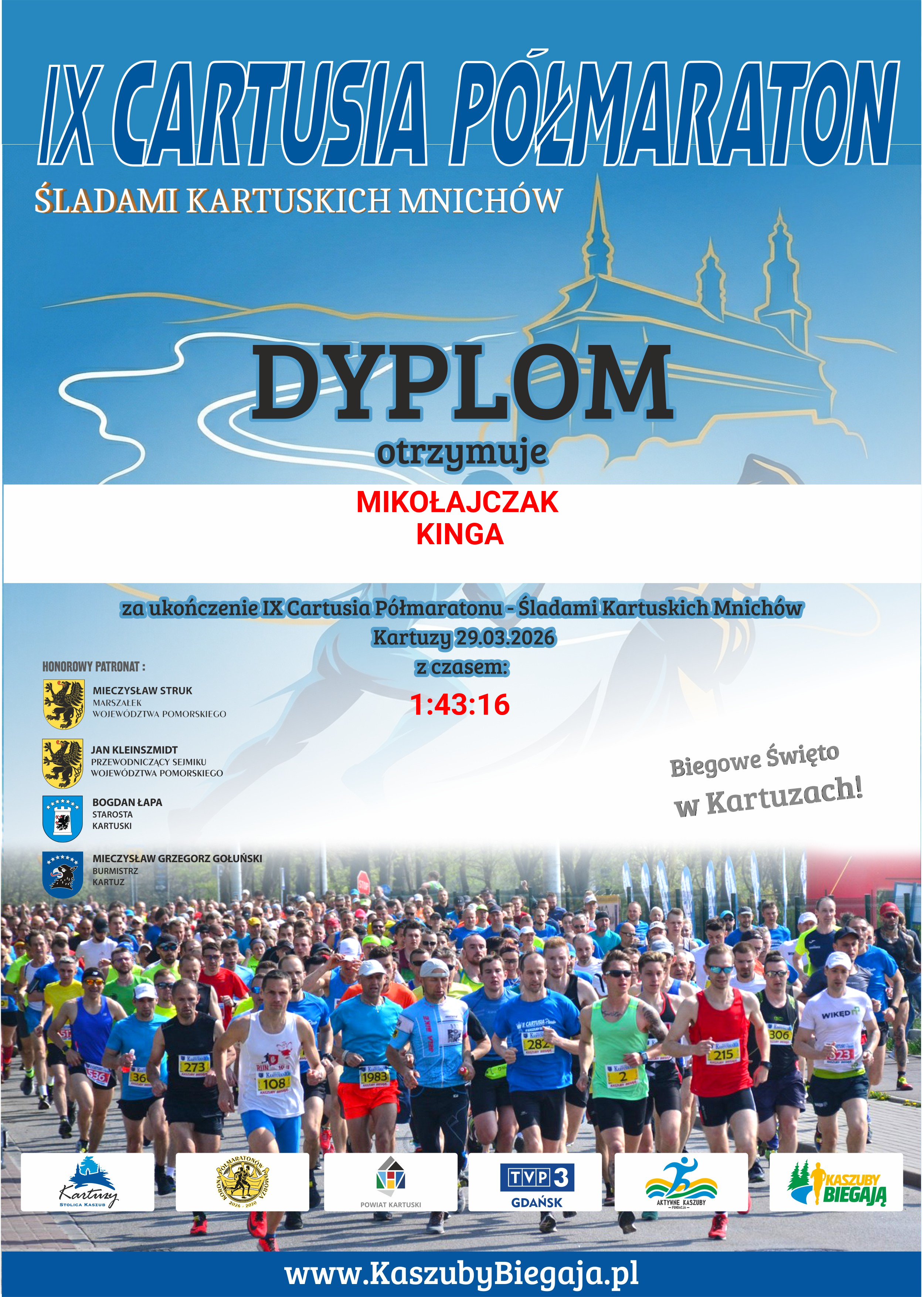 | 482. | WARSIŃSKA | PATRYCJA | 509 | K | 113. | K30-39 | 42 | ŁAPINO KARTUSKIE | FIGHTING RUNNERS | 2:22:03 | Pobierz |