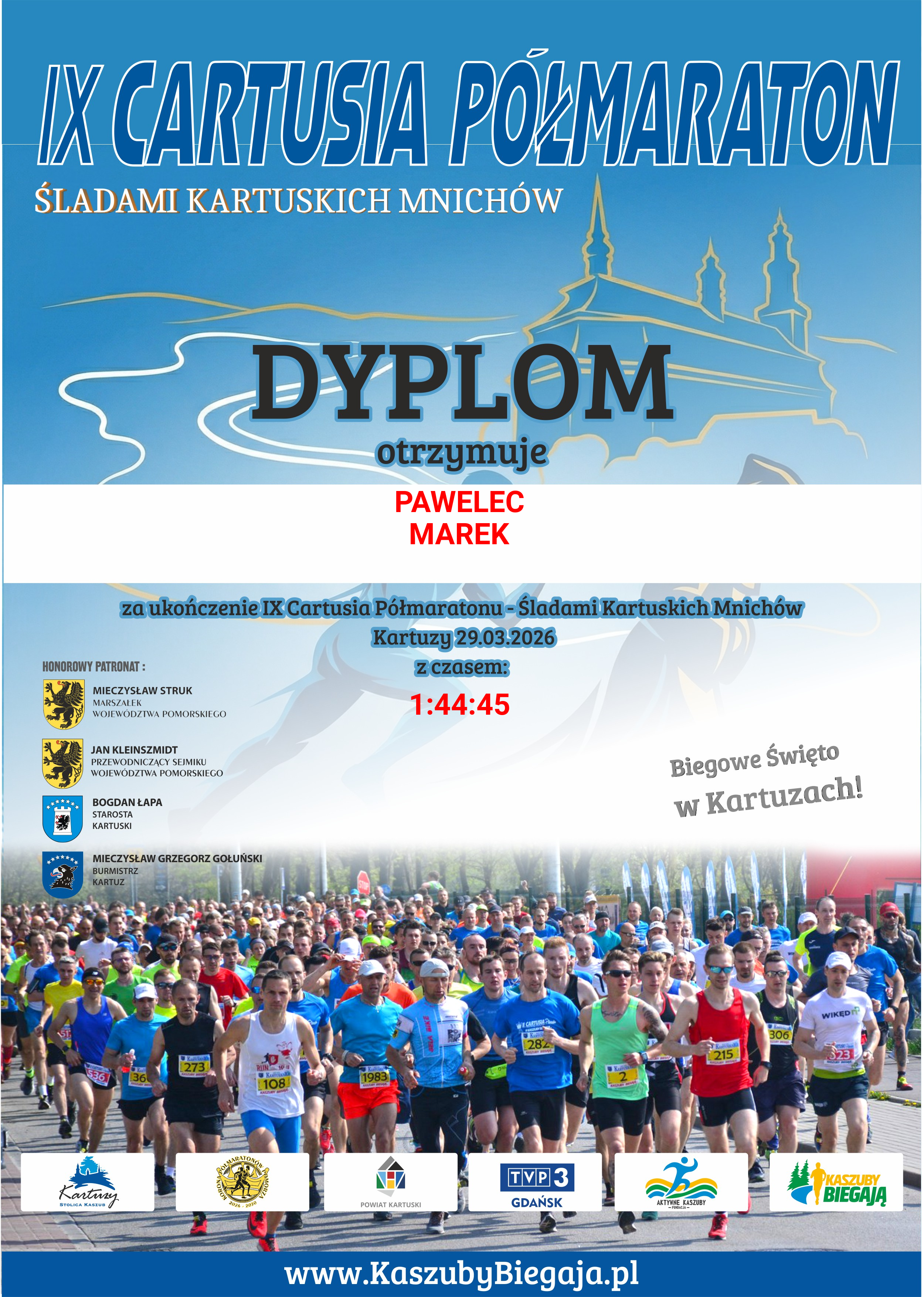 | 56. | BACH | MACIEJ | 7 | M | 52. | M30-39 | 21 | PRUSZCZ GDAŃSKI | ORLEN RUNNING TEAM | 1:31:40 | Pobierz |