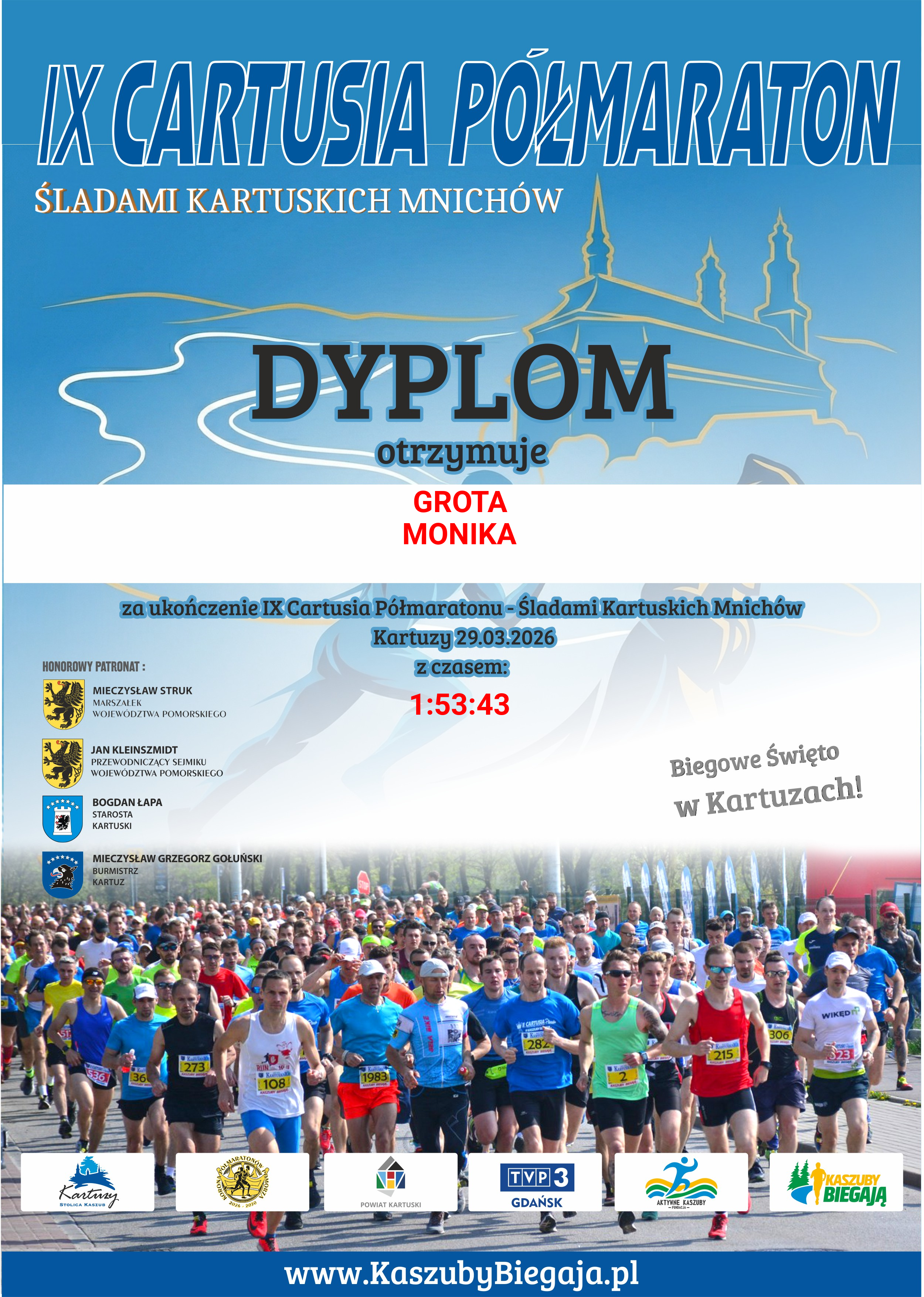 | 462. | ZMUDA TRZEBIATOWSKI | DARIUSZ | 561 | M | 357. | M60-69 | 17 | CHARZYKOWY | CHOJNICE BIEGAJĄ | 2:18:43 | Pobierz |
