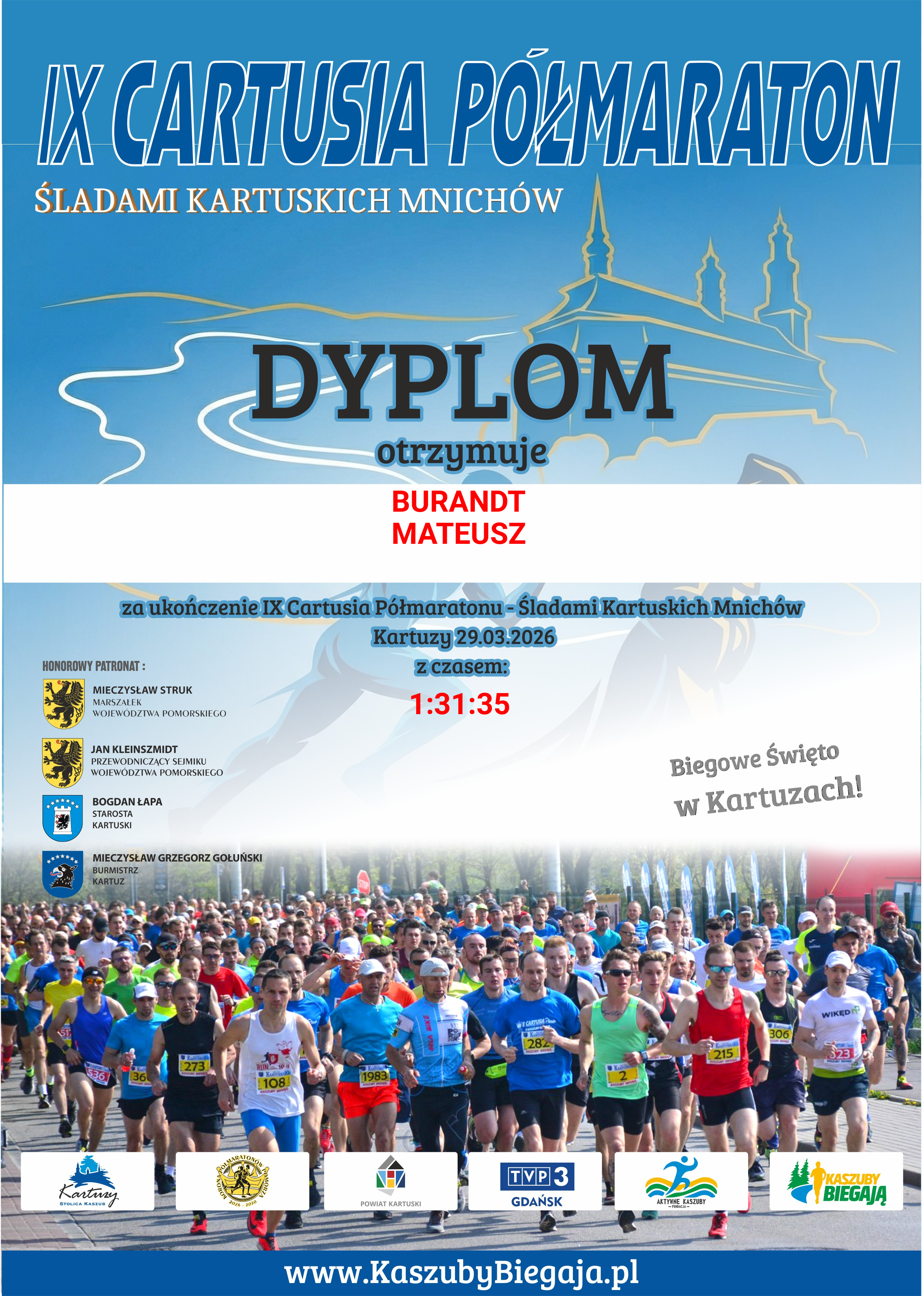 | 55. | BURANDT | MATEUSZ | 51 | M | 51. | M30-39 | 20 | GDAŃSK | 1:31:35 | Pobierz | |