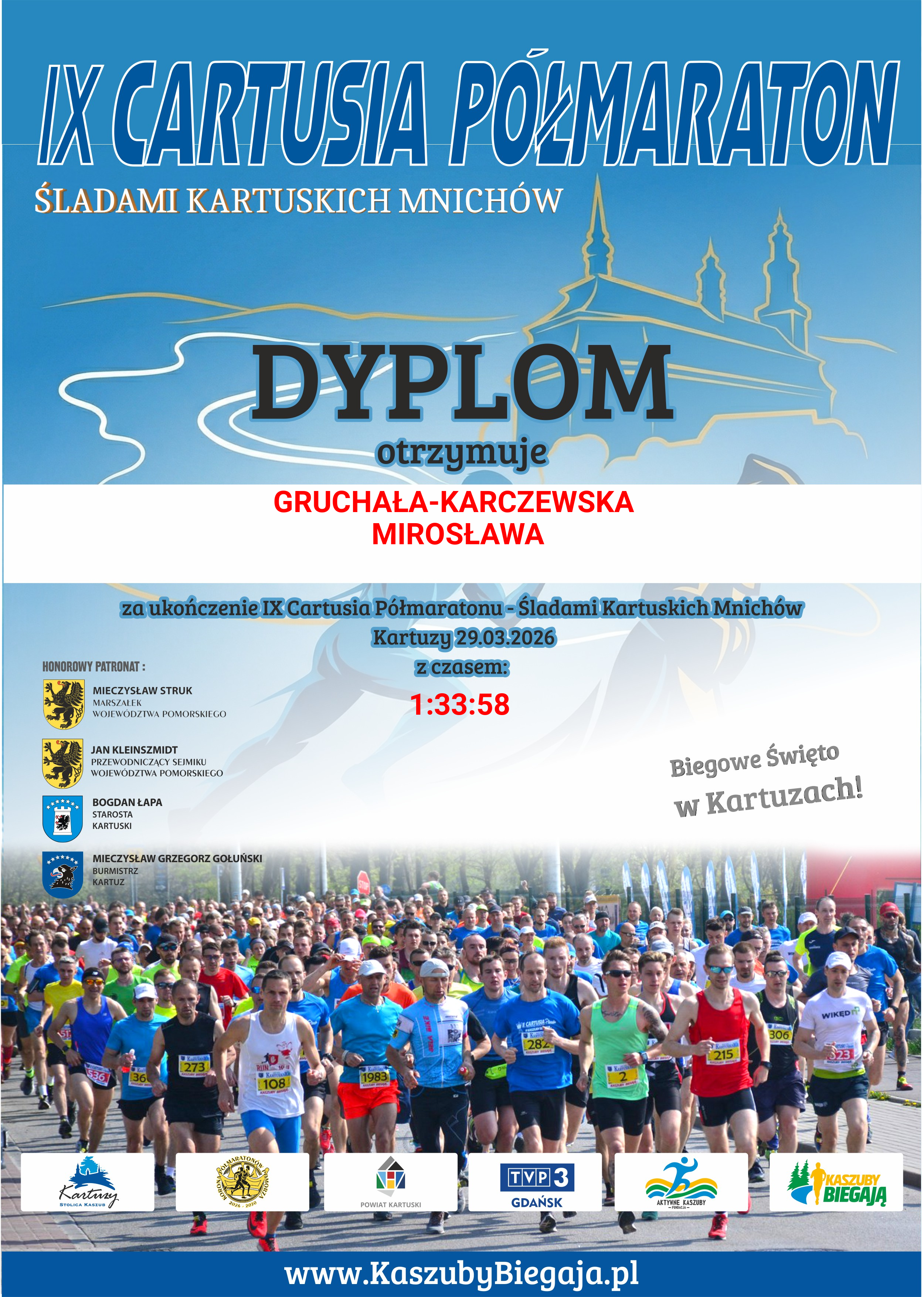 | 67. | GRUCHAŁA-KARCZEWSKA | MIROSŁAWA | 141 | K | 5. | K40-49 | BORZYTUCHOM | BASZTA BYTÓW | 1:33:58 | Pobierz | |