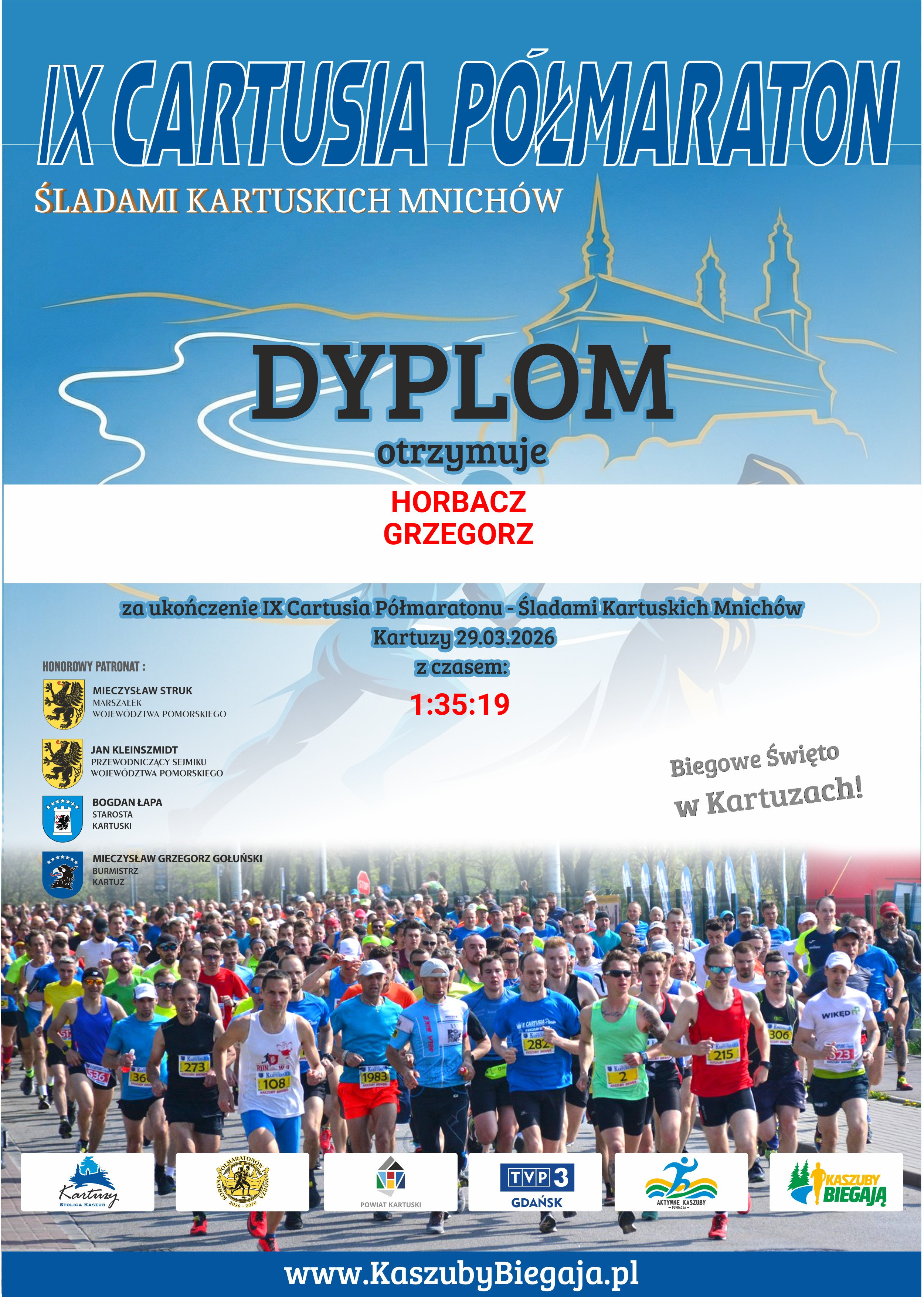 | 85. | HORBACZ | GRZEGORZ | 153 | M | 77. | M50-59 | 8 | SŁUPSK | 1:35:19 | Pobierz | |